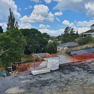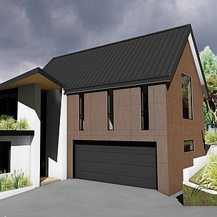 The narrow site presented several challenges including a relatively steep slope from the road down to a small creek, flood zone and a riparian yard for which we procured a resource consent for several non-complying issues.
